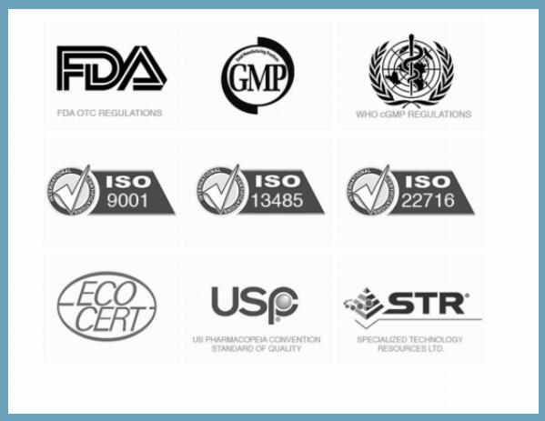 emilia采用经过安全性、功效性反复验证的原料,产品百分之五十以上的原料获得欧盟ECO有机认证,并以制药级的严苛生产标准,获得FDA、GMP、ECO、ISO、USP等国际化妆品生产行业最高等级的权威认证。